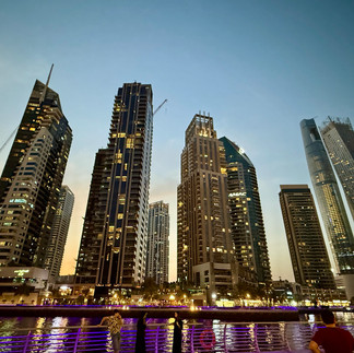 Nach dem Beachclub habe ich es mir dann in der Dubai Marina (ein künstlich angelegter Kanal mit einem promenadenartigen Uferbereich) gutgehen lassen. Die Dubai Marina ist ein Ort, der förmlich dazu einlädt, die Zeit zu vergessen. Ob beim Spazieren entlang der eleganten Uferpromenade oder beim Betrachten der beeindruckenden Architektur – hier findet jeder seinen persönlichen Wohlfühlmoment. Die Lichter der rund 200 Hochhäuser spiegelten sich im Wasser, während ich den Abend mit köstlichen arabischen Spezialitäten ausklingen ließ – ein Moment, der fast magisch wirkte (die Restaurant-Empfehlung findest du unter "Restaurants-Tipps" am Ende des Reiseberichtes). Wenn du einen Besuch planst, solltest du die Marina am Abend erkunden – die Atmosphäre ist dann besonders stimmungsvoll.