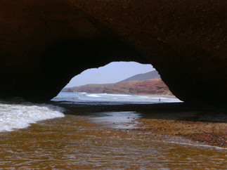 Legzira Beach bei Sidi Ifni: Die Felsentore an Marokkos Atlantikküste ... selten war ich so beeindruckt von einem Strand mit seinen Felsformationen wie hier nahe Sidi Ifni. Der Legzira Beach ist einer der schönsten Strände Marokkos. Einst gab es dort zwei imposante Felsentore, die die Landschaft prägten. Leider ist einer der Bögen im Jahr 2016 eingestürzt, doch der verbleibende Bogen bleibt ein spektakuläres Naturwunder.